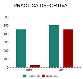 La práctica de deporte está más o menos a la par, aunque la de los hombres sigue siendo superior (50,4%) frente a las mujeres (45,5%). Este dato es muy destacable, ya que en el año 2010, únicamente un 28% de las mujeres practicaban deporte, mientras que el porcentaje de hombres que lo practicaban era de 45,4%. En cuanto al empleo vinculado al deporte, nos encontramos con que, una vez más, el porcentaje de hombres que se dedican profesionalmente al deporte es más elevado (54,6%) que el de las mujeres (45,4%).
